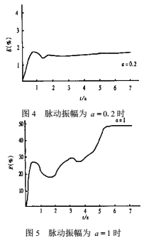經(jīng)過計(jì)算分析,發(fā)現(xiàn)導(dǎo)致渦輪流量計(jì)產(chǎn)生誤差的主要因素是脈動(dòng)流的振幅和頻率,通過對多幅圖形的比較,發(fā)現(xiàn)有如下規(guī)律: