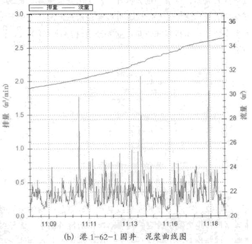 從圖2中可以看出,水泥漿排量曲線比較穩(wěn)定,紋波為0.05m³/min,基本可以認為是渦輪的偶發(fā)跳動或者采集設備的紋波導致,水泥漿的累積流量基本形成一條直線上升。泥漿排量本應該是0m³/min,實際曲線上可以看出很不穩(wěn)定,從11: 03: 53之后,*大能夠達到1.06m³/min,一眼看過去就會感覺是雜亂無章的波形,泥漿的累積流量本應該是一條水平線,結果變成了一條不規(guī)則的斜線。