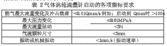 在啟動氣體渦輪流量計時,應保持相對較慢的加壓速度,如果過快的加壓將有可能損壞氣體渦輪的葉片,氣體渦輪流量計啟動的各項指標要求如表2所示。