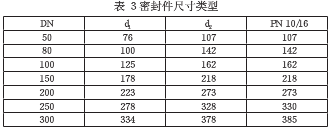 (十三)應用時必須保證流量計的氣體出口與入口連接準確,并且每一個螺栓都應受力勻稱,為了確保測量準確度,需保障管線中不含任何形式的密封件,密封件的使用需根據設計要求,尺寸類型如表3所示。