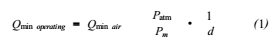 式中:Qmin operating為工作條件下的*小流量;Qmin air為工廠給出的*小流量;Patm為標(biāo)定時(shí)的壓力,通常為當(dāng)?shù)卮髿鈮?;Pm為工作條件下的壓力(絕對壓);d為被測氣體的相對密度。