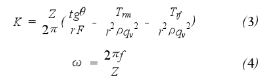 當(dāng)流量大于始動流量以后,隨著流量的增加,渦輪旋轉(zhuǎn)角速度也在增大,流體產(chǎn)生的阻力矩Trf將成為影響流量計精度的主要因素。所以,我們假定Trm= 0,式(3)變?yōu)椋?/div>