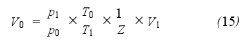 式中:下標(biāo)0表示標(biāo)準(zhǔn)狀態(tài)。