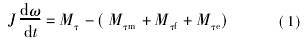式(1)中通常電磁反作用力矩Mτe比較小,可以忽略。正常工作條件下,可認(rèn)為管道內(nèi)流量不**間變化,即葉輪以穩(wěn)定的角速度旋轉(zhuǎn)。即存在