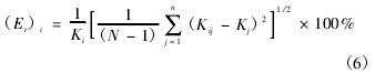式中:(Er)i為不同工作壓力下流量計儀表系數(shù)的重復性,%;Ki為不同工作壓力下流量計儀表系數(shù)的平均系數(shù),1/m3;Kij為*i種工作壓力下流量計的儀表系數(shù),1/m3;n為不同工作壓力的個數(shù)。