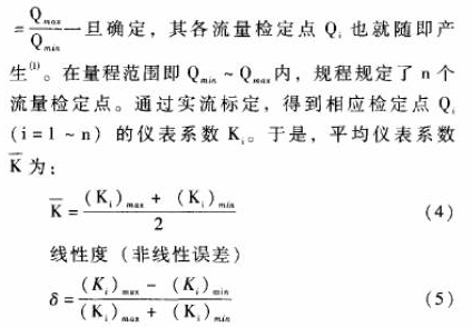 在QQmax,即在測量范圍之外誤差將超過δmax。這就是說雖然渦輪流量傳感器具有很好的重復性,但是由于電脈沖信號頻率F與體積流量Q之間是非線性的,按照常規(guī)的平均儀表系數(shù)`K的計算方法,對于一定的誤差限士A,由于非線性誤差的存在使得渦輪流量傳感器的工作范圍只能限定在Qmin~Qmax之內(nèi)。