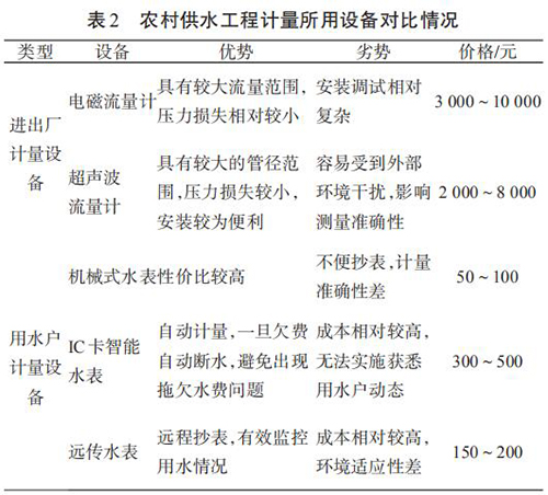 2 農(nóng)村供水工程計量設(shè)備使用及經(jīng)濟性分析
