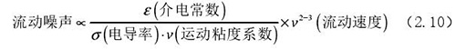 流動噪聲主要出現(xiàn)在低電導率流體的檢測中,由輸出端輸出的直流*化電壓時常出現(xiàn)左右擺動的現(xiàn)象,而此種擺動的電壓被稱為流動噪聲。上式(2.5)中可以觀察了解到流體電導率和流動噪聲呈現(xiàn)出負相關關系,由此可以了解到在進行低電導率的計算中需要重點考慮位移電流。