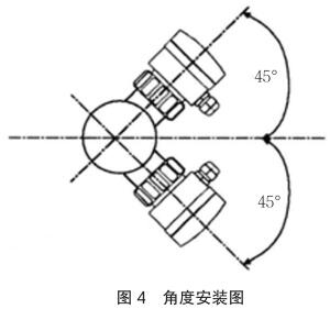 垂直安裝時(shí)確保流向由下而上,如圖 4 中箭頭所示,應(yīng)與管道水平中心線成 45 度角安裝燃油流量表。