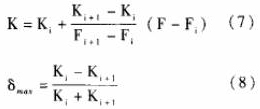 輪流量傳感器的儀表系數(shù)K與Q的關(guān)系近似線性的單調(diào)函數(shù)(見圖2)。因此,在對檢定結(jié)果進(jìn)行處理時(shí),直接將各檢定點(diǎn)的檢定結(jié)果以Fi、Ki的形式存入重油流量表的數(shù)值運(yùn)算部分,不必對其儀表系數(shù)取平均值。在使用渦輪流量傳感器進(jìn)行流量測量時(shí),根據(jù)渦輪流量傳感器的信號(hào)頻率F,即可在以上檢定結(jié)果中檢索各F,值,找出滿足F,≤F≤F的Fi、Fi+1(i=1,2,.,.n-1),n是該渦輪流量傳感器的流量檢定點(diǎn)數(shù);若信號(hào)頻率F=Fi或F=Fi+1,則相應(yīng)的Ki或K.i+1即為所需的儀表系數(shù);若信號(hào)頻率Fi