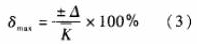 圖2顯示測量出電脈沖信號(hào)頻率F用平均儀表系數(shù)`K計(jì)算得到的Q值,在Qmin~Qmax范圍內(nèi)的*大相對誤差為: