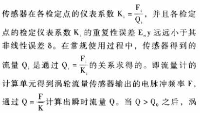 對于重復(fù)性很好而線性度較差的渦輪流量傳感器,要擴(kuò)大其測量范圍或減小測量誤差,研究的核心問題是設(shè)計(jì)一-種便捷的使用方法,按照行鑒定規(guī)程利用原有檢定數(shù)據(jù),使渦輪流量傳感器在具有很小重復(fù)性誤差的流量范圍內(nèi),都能得到很準(zhǔn)確測量效果。