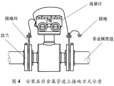 純化水流量表安裝在金屬管道上,安裝時將金屬管道與純化水流量表相連接,接地線再接入接地網(wǎng),如圖 3 所示。