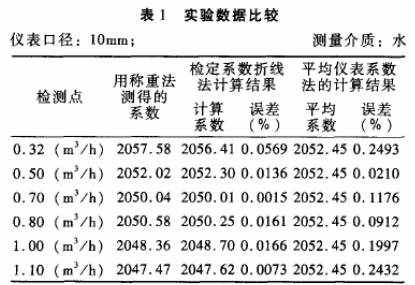 被檢儀表:公稱通徑分別為10mm和15mm的渦輪流量傳感器各一臺(tái);檢定裝置:靜態(tài)稱重法標(biāo)準(zhǔn)水流量檢定裝置,系統(tǒng)精度+0.2%。分別采用常規(guī)的平均儀表系數(shù)法和檢定系數(shù)折線法進(jìn)行標(biāo).定,并與作為標(biāo)準(zhǔn)的靜態(tài)稱重法的檢定結(jié)果進(jìn)行比對,結(jié)果見表1.表2。