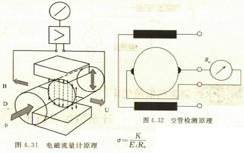 非滿管檢測也是基于電導(dǎo)率檢側(cè)的方法。在圖4.33所示的電磁流量傳感器中,增加了一個(gè)(或一對(duì))非滿管檢測電*。當(dāng)導(dǎo)管內(nèi)液體滿管時(shí),頂部電*與其他電*之間的電阻值很小;而當(dāng)存在非滿管情況時(shí),頂部電*與導(dǎo)電液體之間有氣體阻隔,所以電*電阻顯著增大,從而做出非滿管判斷。