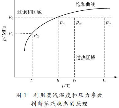 利用蒸汽的溫度壓力參數(shù)自動(dòng)判斷蒸汽處于過(guò)熱狀態(tài)還是飽和狀態(tài),原理如圖1所示。關(guān)鍵是判斷蒸汽的溫度壓力值是落在臨界飽和曲線的下方還是上方,如果落在下方,則為過(guò)熱狀態(tài);如果落在上方,則為飽和狀態(tài)。