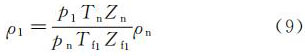 對(duì)于組分穩(wěn)定的氣體,可用式(9)計(jì)算ρ1: