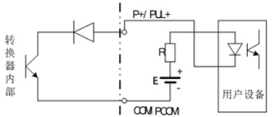 PUL+/ P+、ALM+(AH)、ALM-(AL)和 PDIR(FDIR)均為集電*開路(OC 門)輸出(參閱圖 3.6b、3.6d,用戶接線時(shí)必須參照如下電路外接電源和負(fù)載: