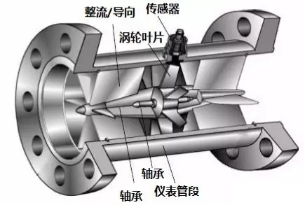 下圖就是一款智能一體化渦輪流量計(jì)的透視圖,可以看到流量計(jì)的管道中心安放了一個(gè)渦輪,渦輪兩端由軸承支撐。
