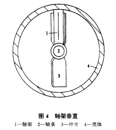 為了降低啟動流量,把圖4中的軸架順時針旋轉(zhuǎn)90°,軸架為水平位置如圖5所示。這樣,上、下葉片都受到氣流作用,則*小啟動流量為3.7m³/h。由此看出,軸架水平安裝較好,不但所需的啟動流量較小,亦可達到擴大量程范圍的目的。
