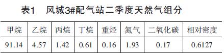2015年7月,新疆油田公司風(fēng)城3#配氣站的渦輪流量計(jì)在現(xiàn)場(chǎng)驗(yàn)收時(shí)就進(jìn)行了此項(xiàng)內(nèi)容的驗(yàn)證,對(duì)該站在用的3套分體式溫壓補(bǔ)償型氣體渦輪流量計(jì)(雙顯示式)分別選取了3組數(shù)據(jù)(工況壓力、工況溫度、工況壓縮系數(shù)、標(biāo)況壓縮系數(shù)、工況流量、標(biāo)況流量),將流量計(jì)測(cè)量的標(biāo)況流量與由氣態(tài)方程計(jì)算出的理論標(biāo)況流量進(jìn)行對(duì)比,得出兩者誤差,根據(jù)誤差判斷在傳輸過程的失真程度。按**標(biāo)準(zhǔn)要求對(duì)風(fēng)城3#配氣站取樣得到的天然氣組分報(bào)告,詳細(xì)數(shù)據(jù)如表1所示。根據(jù)表1中的天然氣組分,以及介質(zhì)的工作壓力、工作溫度可計(jì)算出工況壓縮系數(shù)Zg,根據(jù)**標(biāo)準(zhǔn)中天然氣標(biāo)準(zhǔn)參比條件,可計(jì)算出標(biāo)況壓縮系數(shù)Zn。